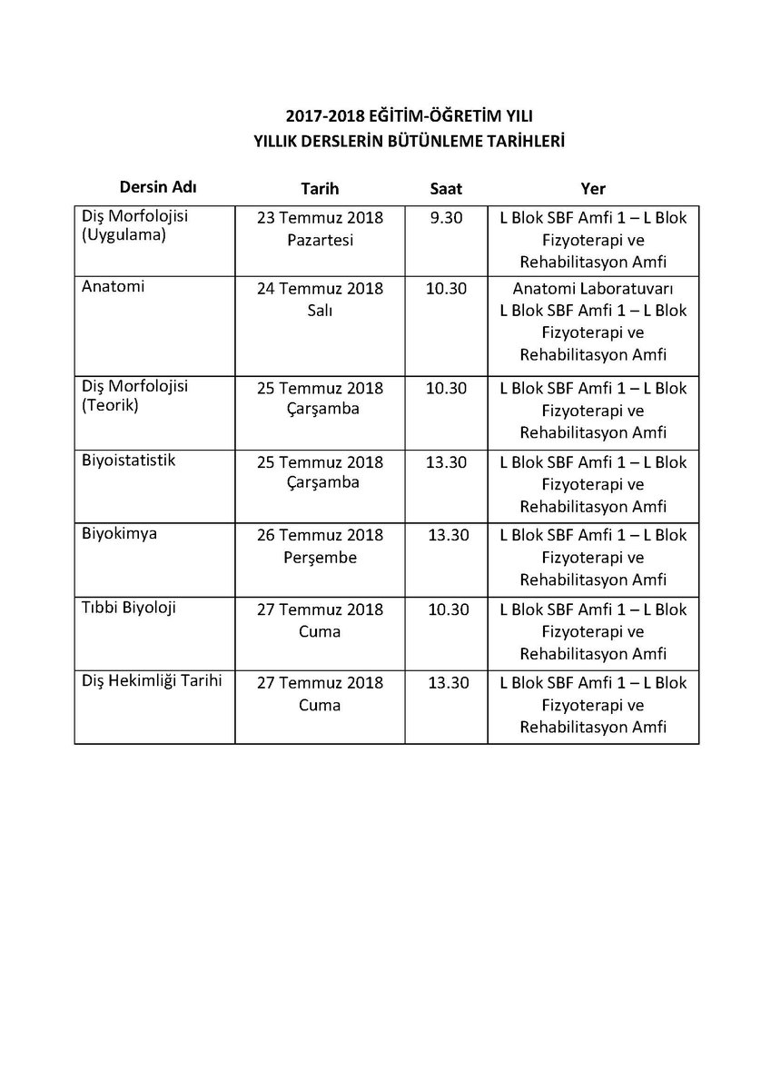 Sbu Dis Hekimligi F Auf Twitter 2017 2018 Egitim Ogretim Yili Bahar Donemi Yillik Derslerin Butunleme Sinav Programi Aciklandi