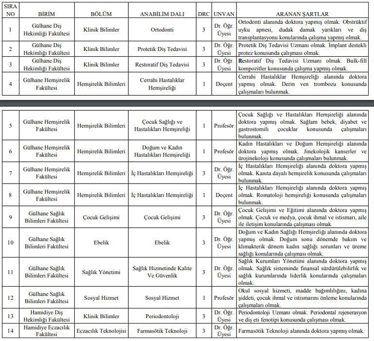 Saglik Bilimleri Universitesi Doktor Ogretim Uyesi Docent Ve Profesor Alimi Yapacak Akademikpersonel Org