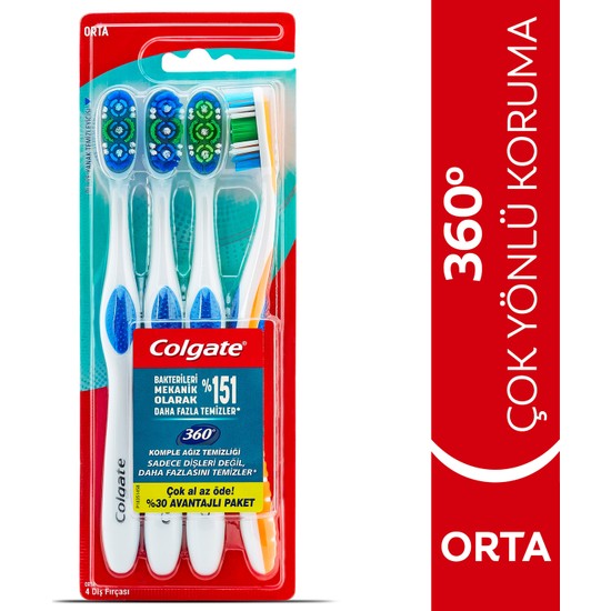 Colgate 360 Komple Agiz Temizligi Dis Fircasi Orta 4 Adet Fiyati