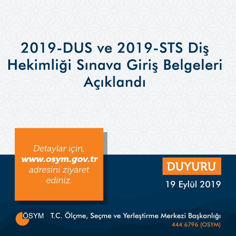 2019 Dus Ve 2019 Sts Dis Hekimligi Sinava Giris Belgeleri Aciklandi Son Dakika Egitim Haberleri